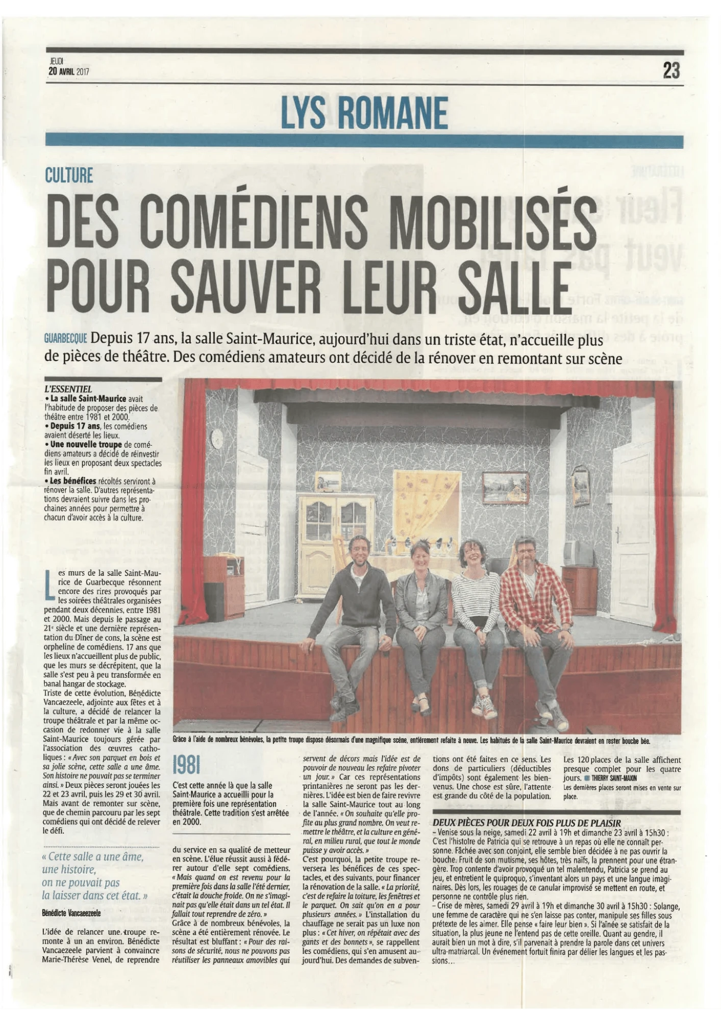 Au-delà du travail réalisé, c’est aussi un esprit d’entraide et de convivialité qui fait vivre le Théâtre Saint Maurice au quotidien.